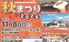 新着記事一覧 2020.08.21大林 武司クリスマスジャズコンサートinとみおか2025.11.18TOMIOKAまち灯り2025イルミネーションのお知らせ2025.11.122025.11.172025富岡町国際交流パーティーの案内2025.11.12Caféハナミズキ2025.10.31富岡秋まつり20252025.10.09