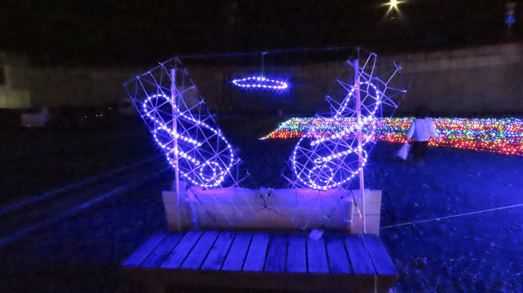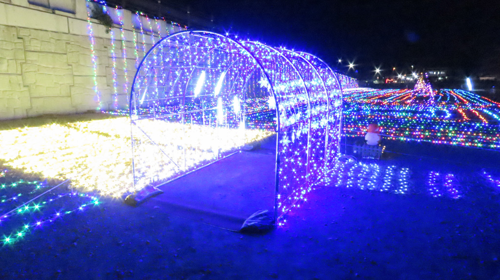 会場のJR富岡駅前は時計を利用したツリーや町のシンボルでもある桜の形をしたイルミネーションの他に、今年はイルミネーションのトンネルも登場しLEDの鮮やかな光で包まれました。