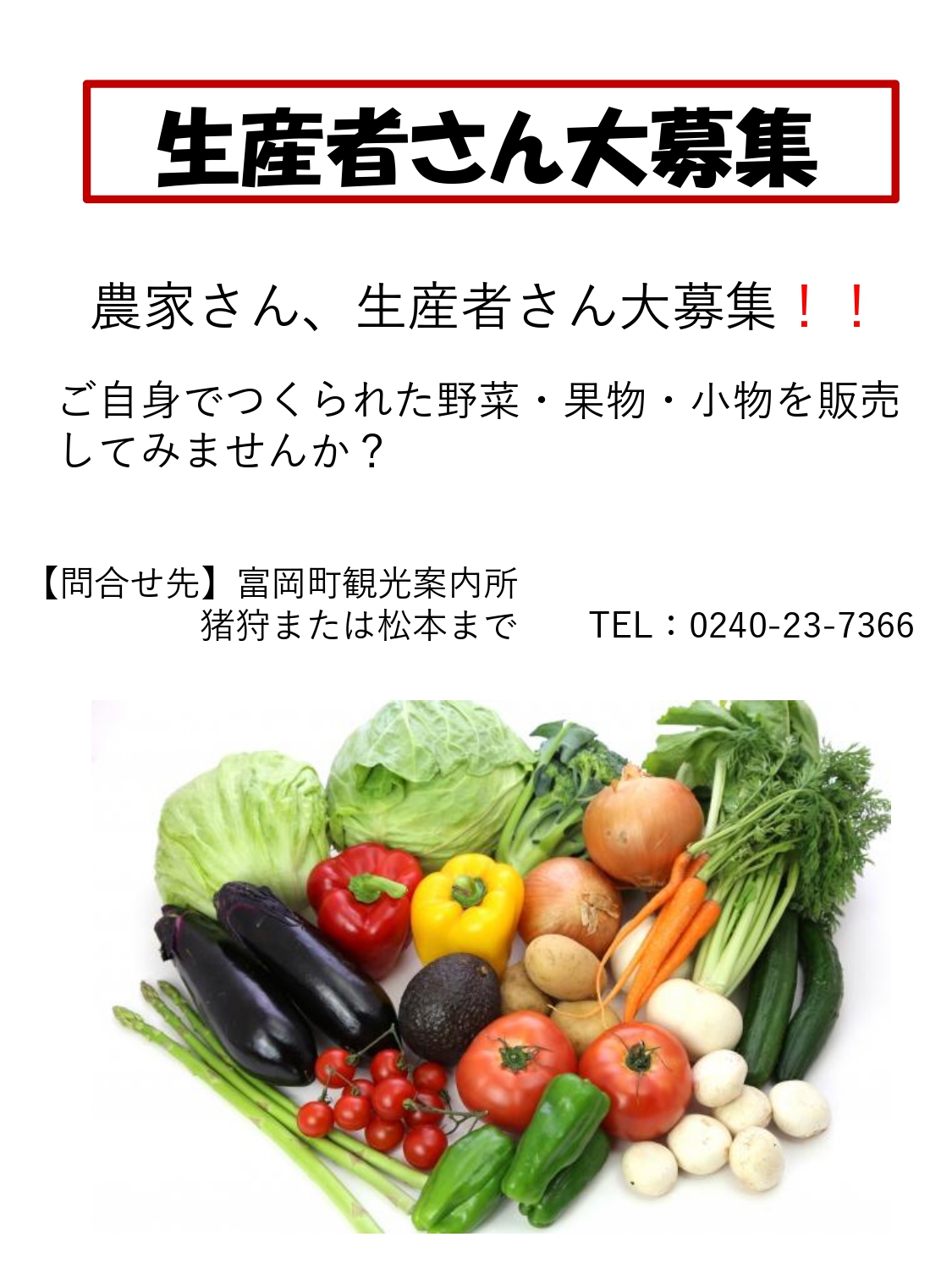 お知らせ農家さん、生産者さん大募集 !!