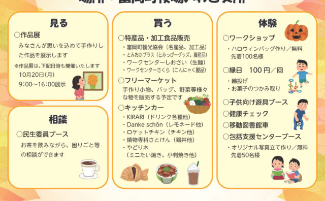 イベントとみおか・いわきふれあいフェスタ2025 富岡町役場いわき支所にて「とみおか・いわきふれあいフェスタ2025」が開催されます。「見る」「買う」「体験」「相談」と... 2025.10.03イベント